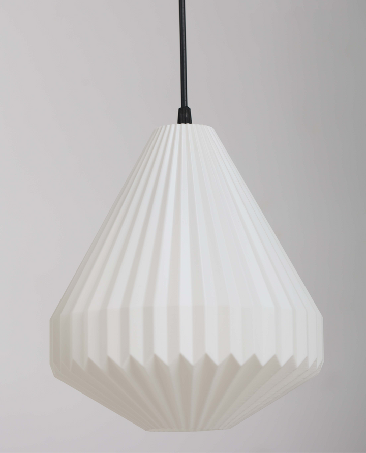 MIMA - the origami lampshade that will transport you to new heights! Meaning "flying in the sky" in Japanese, this modern hanging lamp effortlessly combines traditional Japanese elegance with contemporary design. Its sleek white lantern-inspired silhouette will elevate your minimalist home decor to a whole new level.